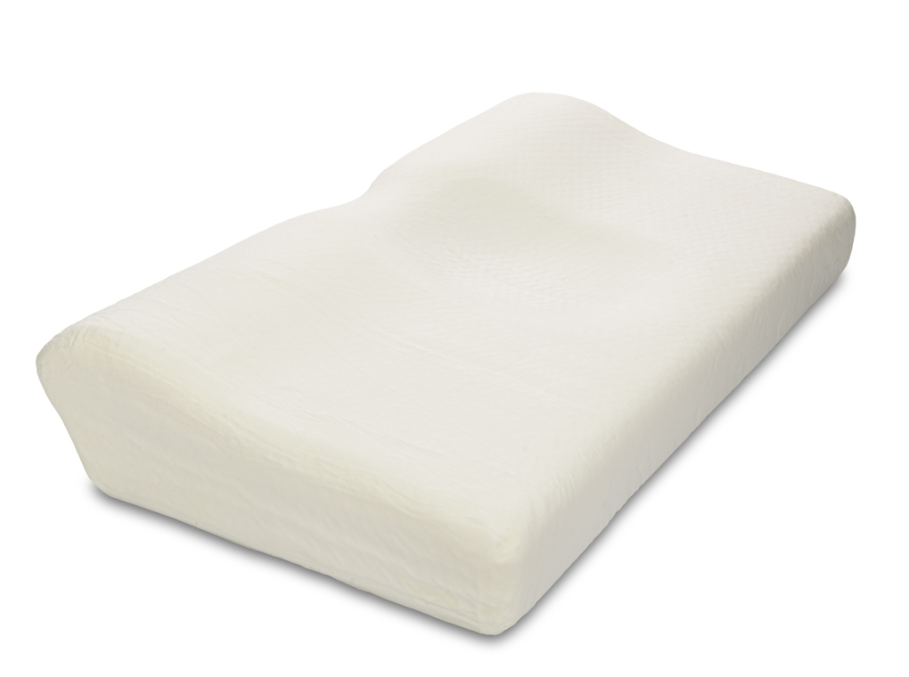 Formově litý ergonomický polštář z paměťové pěny s anatomickým designem pro správné držení hlavy a krční páteře.